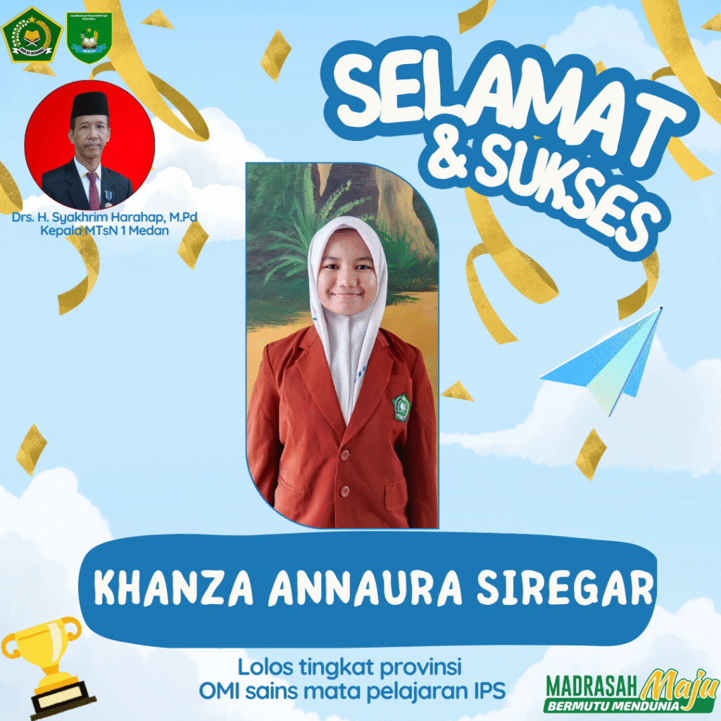 Assalamu’alaikum #sobatemsen, alhamdulillah 1 siswa MTsN 1 Medan lolos ke tingkat provinsi olimpiade madrasah Indonesia untuk mata pelajaran IPS. Mohon doanya, Semoga bisa go tingkat nasional ya, aamiin….